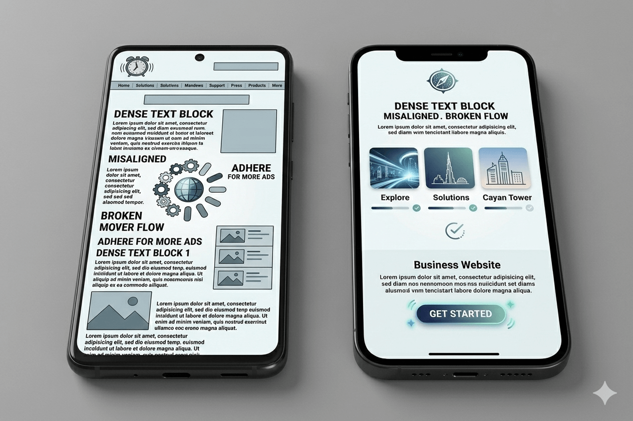 Buttons too small to tap. Text that requires zooming. Images that overflow the screen. Forms that are impossible to fill out on a touchscreen. Each of these is a quiet exit point — a moment where a potential customer gives up and goes somewhere else.