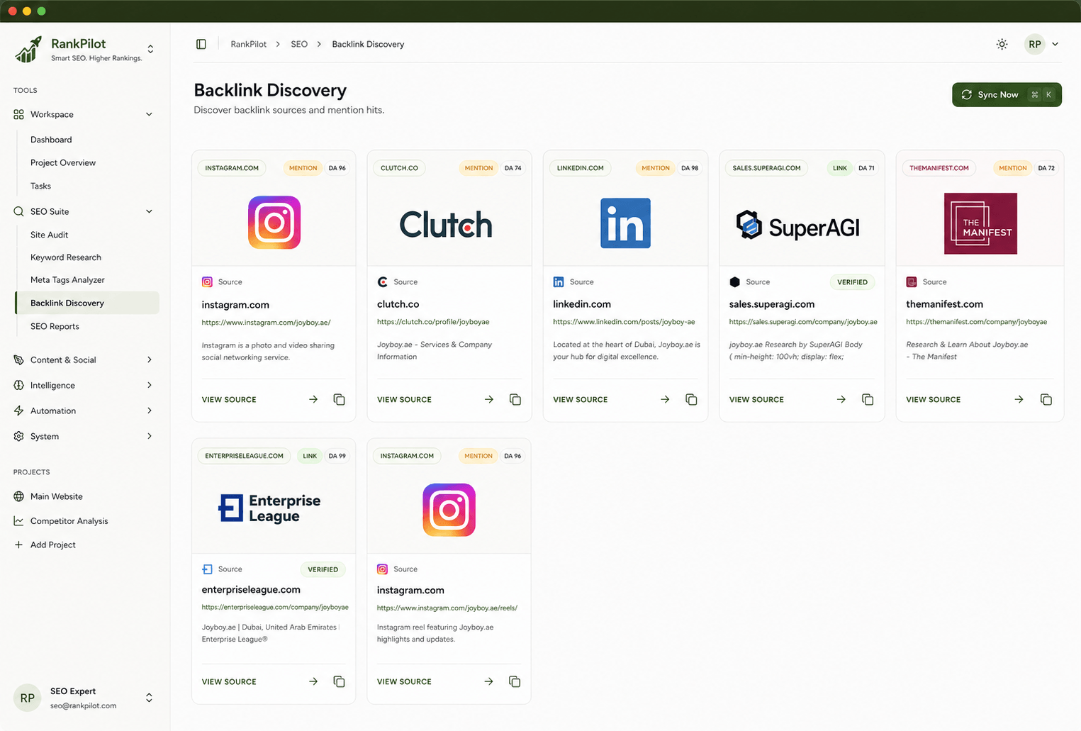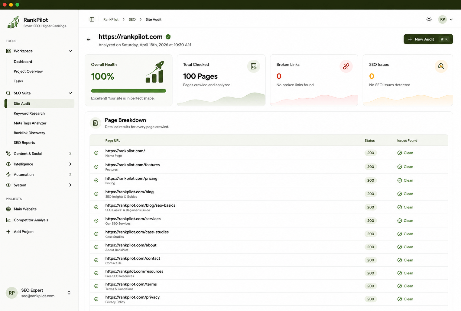 RankPilot SEO combines search visibility tracking, competitor research, content planning, AI-assisted blog generation, and social media content workflows. It is built for agencies and businesses that want a practical SEO command center instead of scattered spreadsheets, disconnected tools, and irregular publishing.